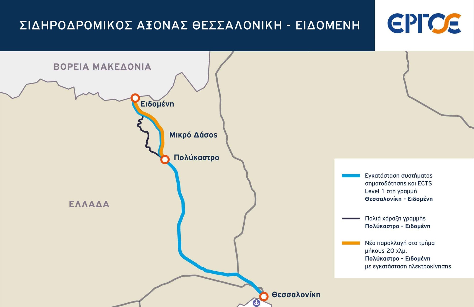 Το συνολικό μήκος του άξονα της γραμμής Θεσσαλονίκη (ΤΧ1) – Ειδομένη, στο οποίο θα εγκατασταθεί νέο σύστημα σηματοδότησης, τηλεδιοίκησης και ETCS L1, είναι 71 χιλιόμετρα. Στο τμήμα Πολύκαστρο – Ειδομένη, το έργο εκτείνεται κατά μήκος της νέας παραλλαγής της γραμμής. Η υλοποίηση μάλιστα των έργων αναβάθμισης της γραμμής αυτής πραγματοποιείται με τη συγχρηματοδότηση από Ευρωπαϊκά Επιχειρησιακά Προγράμματα (ΕΣΠΑ και CEF).