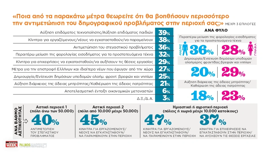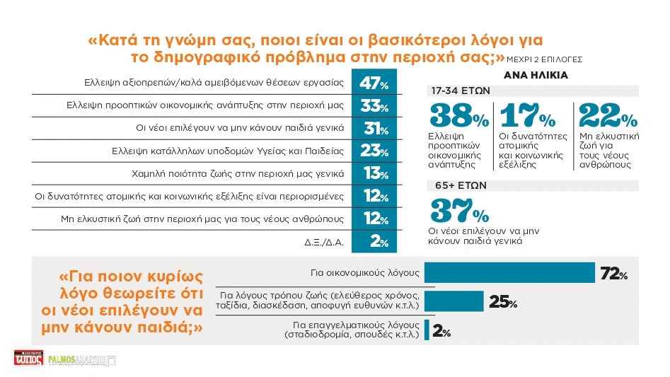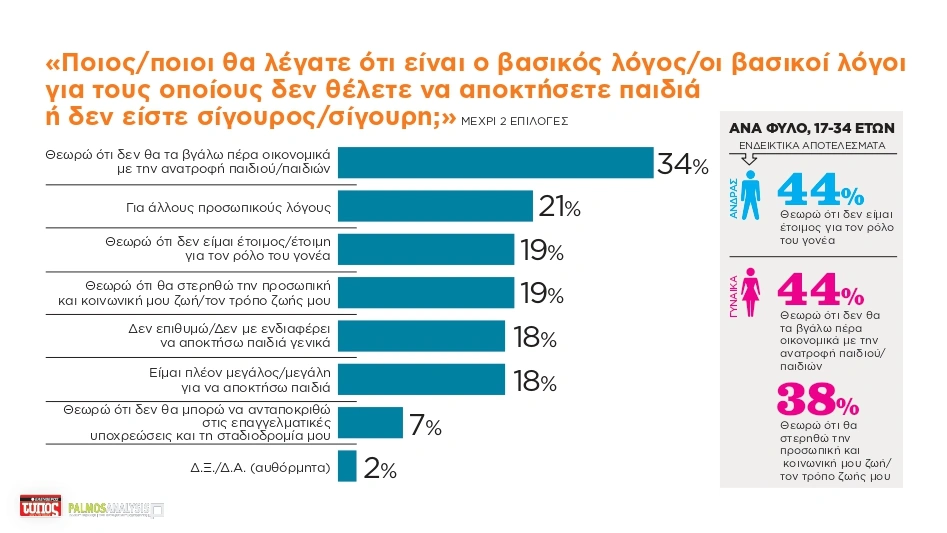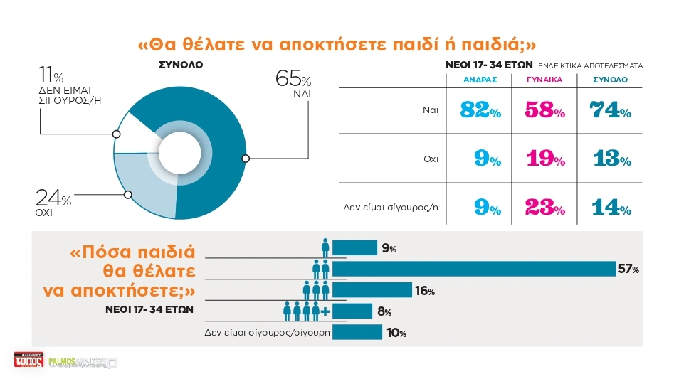 Κατά τη διάρκεια της ημερίδας παρουσιάστηκε από τον Πασχάλη Τεμεκενίδη τα αποτελέσματα της δημοσκόπησης της Palmos Analysis που έγινε για λογαριασμό του ΕΤ. Είναι χαρακτηριστικό ότι όπως καταγράφηκε από την έρευνα οι γυναίκες είναι αυτές που διστάζουν περιοσσότερο να κάνουν παιδιά.