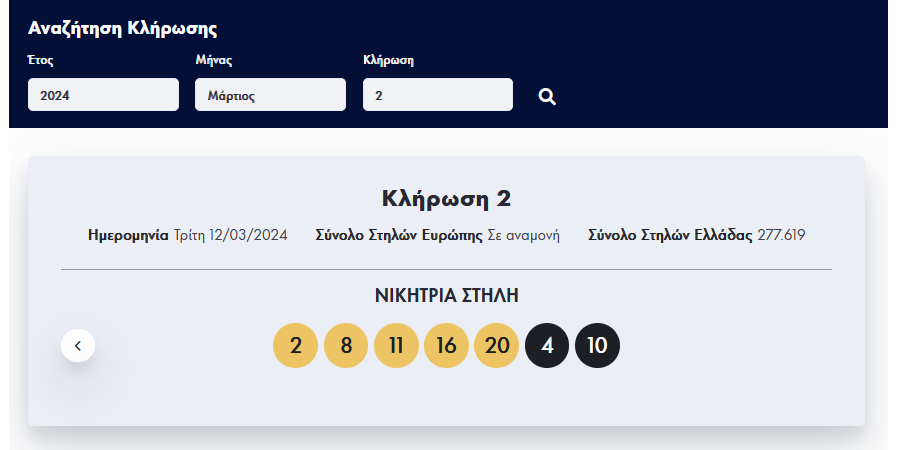 Οι τυχεροί αριθμοί: 2, 8, 11, 16, 20 και αριθμοί Eurojackpot 4 και 10.