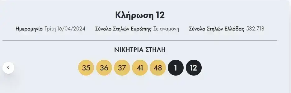 Οι τυχεροί αριθμοί: 5, 36, 37, 41, 48 και οι έξτρα δυο αριθμοί οι 1 και 12