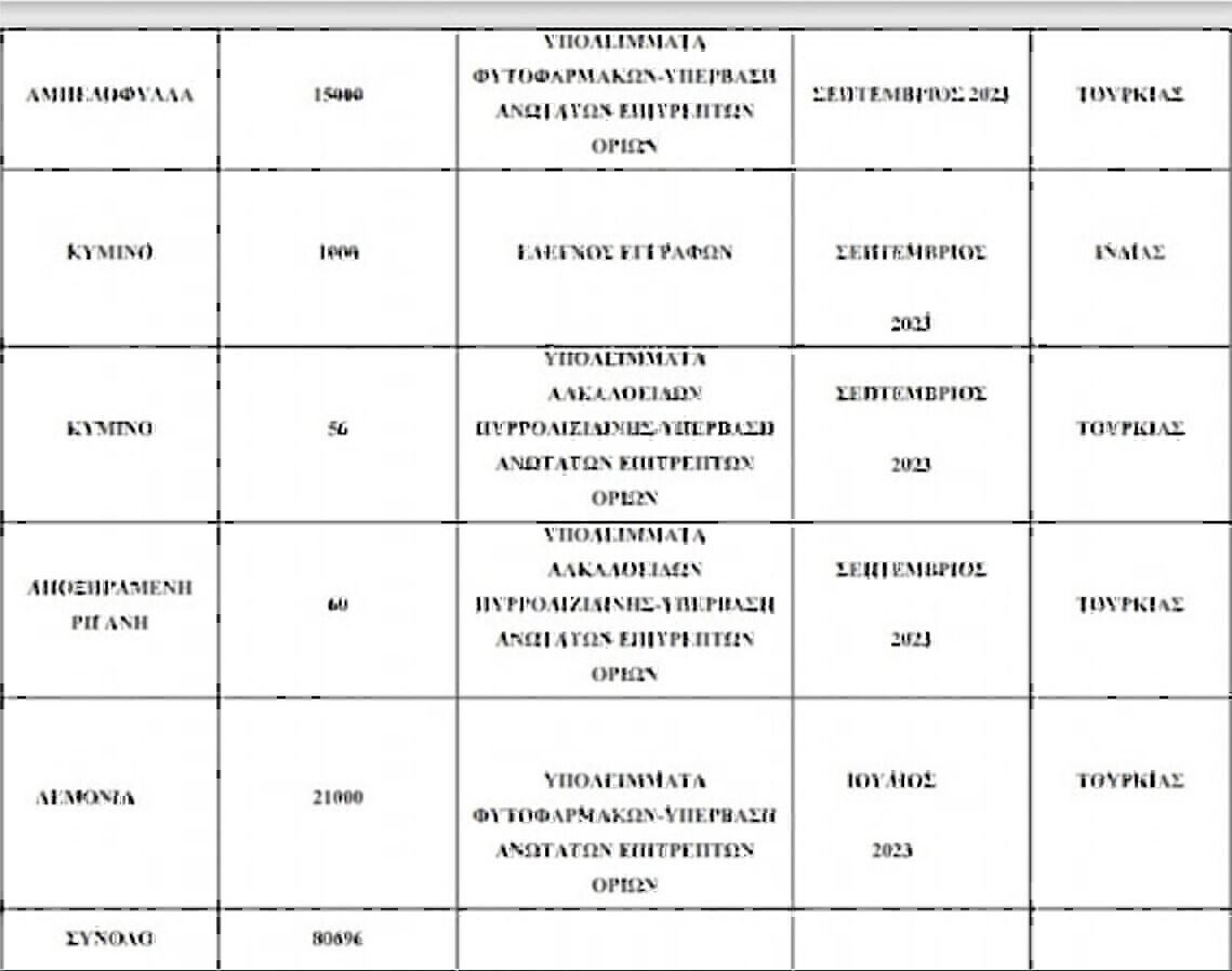 Τροφίμων (EFSA), η υπέρβαση των ανώτατων ορίων στην Ελλάδα ήταν 3,14%, το οποίο σε καμία περίπτωση δεν συνιστά παράγοντα ανησυχίας. Επιπλέον, ο αριθμός δειγμάτων τα οποία εξετάζονται στην Ελλάδα και αντιστοιχούν σε 100.000 κατοίκους είναι υψηλότερος από τον αντίστοιχο μέσο όρο της ΕΕ (34,3 και 19,3 δείγματα/100.000 κατοίκους, αντιστοίχως, για το 2021). Ταυτόχρονα, ο αριθμός των δραστικών για τις οποίες τελικά αναλύεται κάθε δείγμα στην Ελλάδα είναι υψηλότερος από τον αντίστοιχο μέσο όρο της ΕΕ (428 και 271 δραστικές για κάθε δείγμα, αντιστοίχως για το 2020).