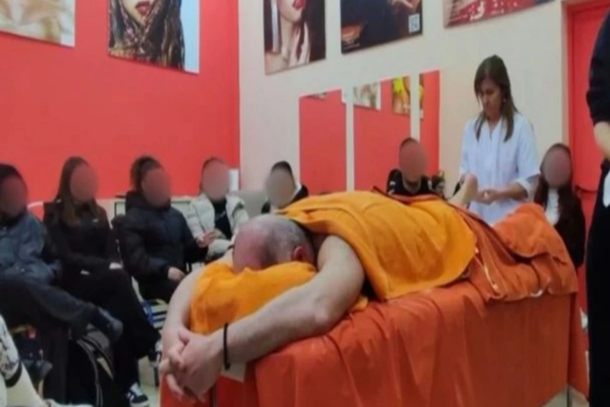 Οι μαθητές έκαναν πρακτική στο μασάζ στον καθηγητή που ήταν ξαπλωμένος ημίγυμνος σε ειδικό κρεβάτι.