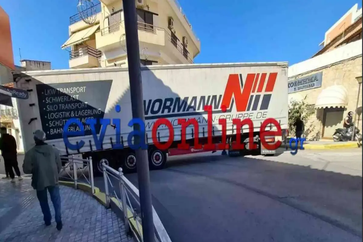 Συγκεκριμένα, ένας Γερμανός οδηγός νταλίκας, λόγω λάθους του GPS σφήνωσε σε κεντρικό δρόμο στο Αλιβέρι, με αποτέλεσμα να μην μπορεί να περάσει.