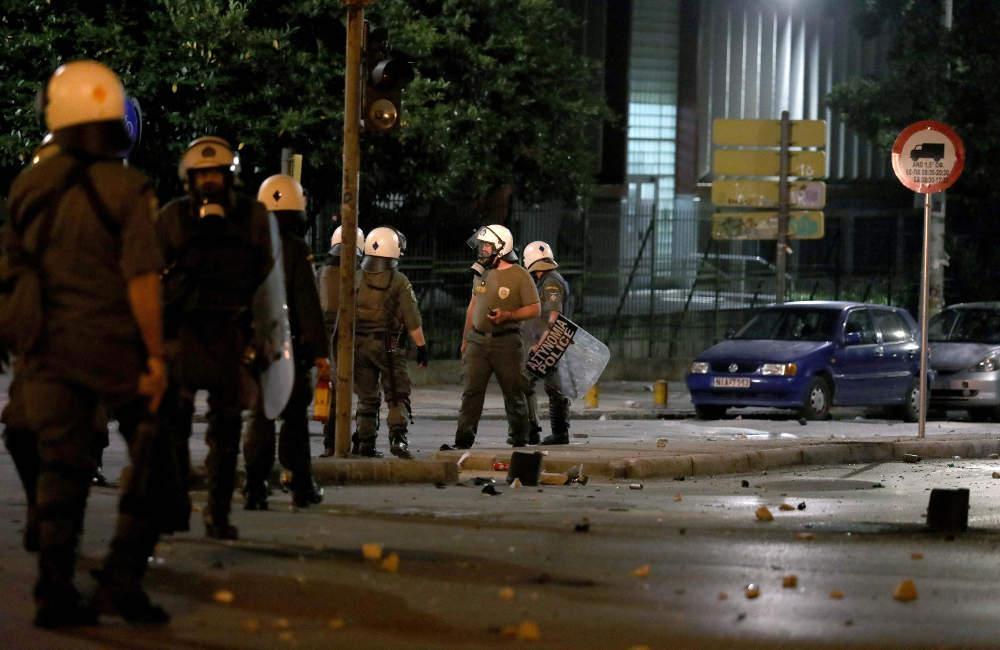 Στη συνέχεια τα άτομα τράπηκαν σε φυγή, συνεχίζοντας να εκτοξεύουν αντικείμενα κατά των αστυνομικών που τους καταδίωκαν.