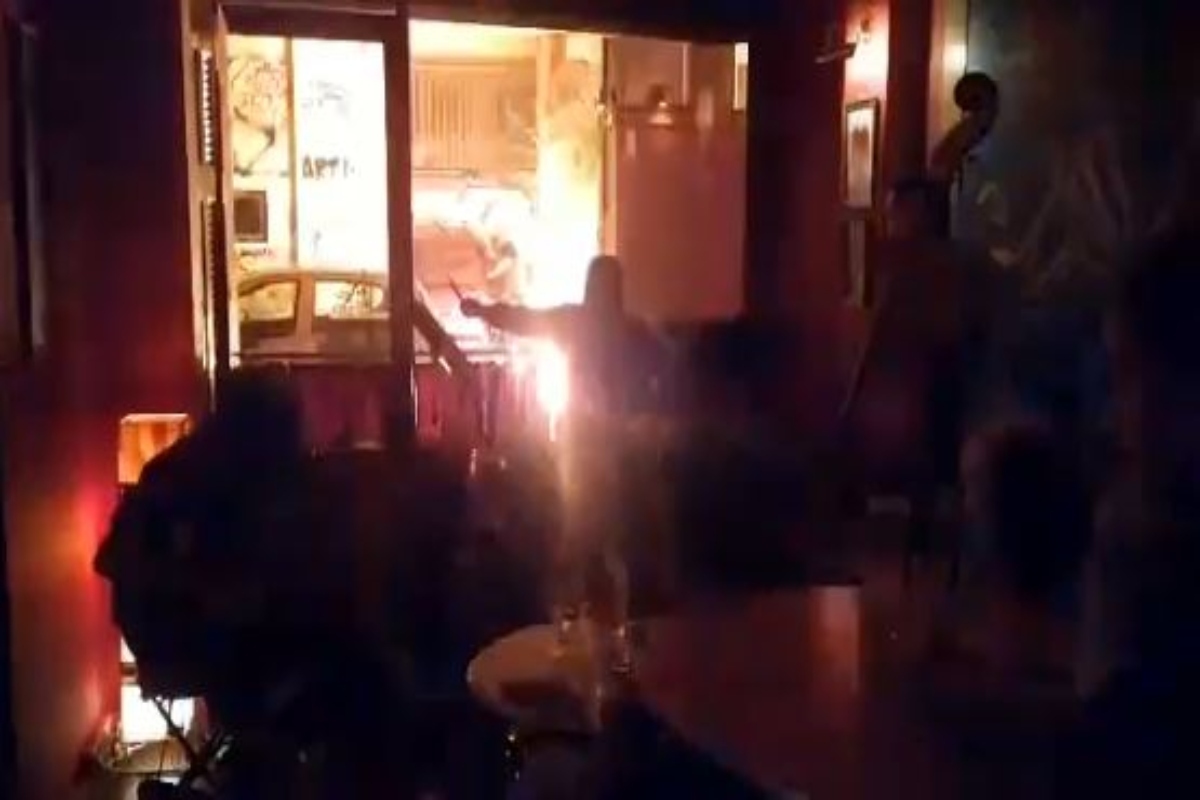 Ωστόσο οι μολότοφ και το κυνηγητό των ΜΑΤ στους διαδηλωτές στους δρόμους της περιοχής δεν πτόησε τρεις μουσικούς σε μαγαζί, οι οποίοι έβλεπαν απ’ έξω τον χαμό και τις φωτιές αλλά συνέχιζαν να τραγουδούν.
