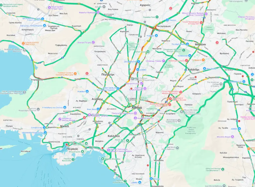 Σύμφωνα με την Αττική Οδό, καθυστερήσεις 15 έως 20 λεπτών σημειώνονται στις εξόδους προς Λαμία, τόσο στο ρεύμα προς Αεροδρόμιο όσο και προς Ελευσίνα, με την κυκλοφορία να διεξάγεται με χαμηλές ταχύτητες στους κεντρικούς οδικούς άξονες.