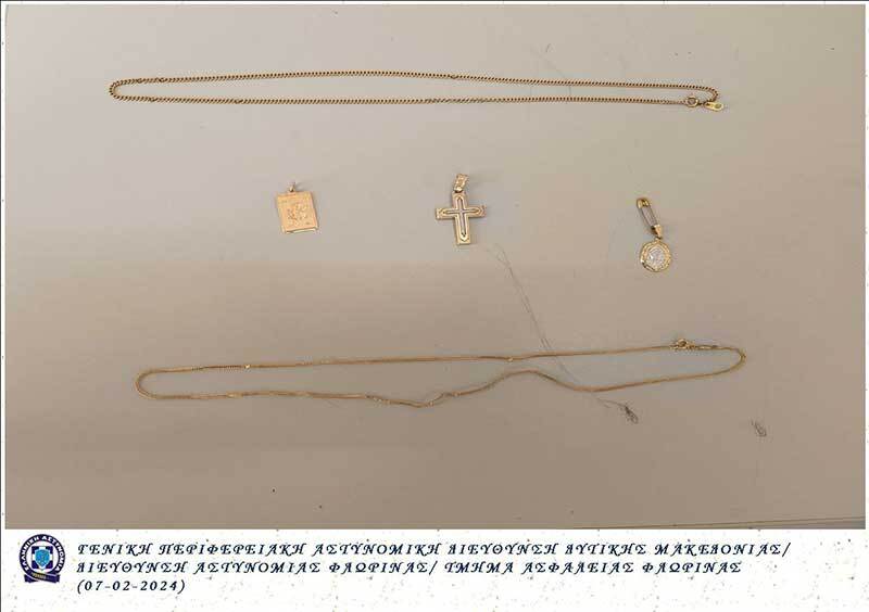 Σε έρευνα που πραγματοποιήθηκε από τους προαναφερόμενους αστυνομικούς στην οικία της 59χρονης, σε περιοχή της Φλώρινας την 06-02-2024, βρέθηκε και κατασχέθηκε μέρος των αφαιρεθέντων κοσμημάτων, το οποίο στη συνέχεια αποδόθηκε στην 33χρονη.