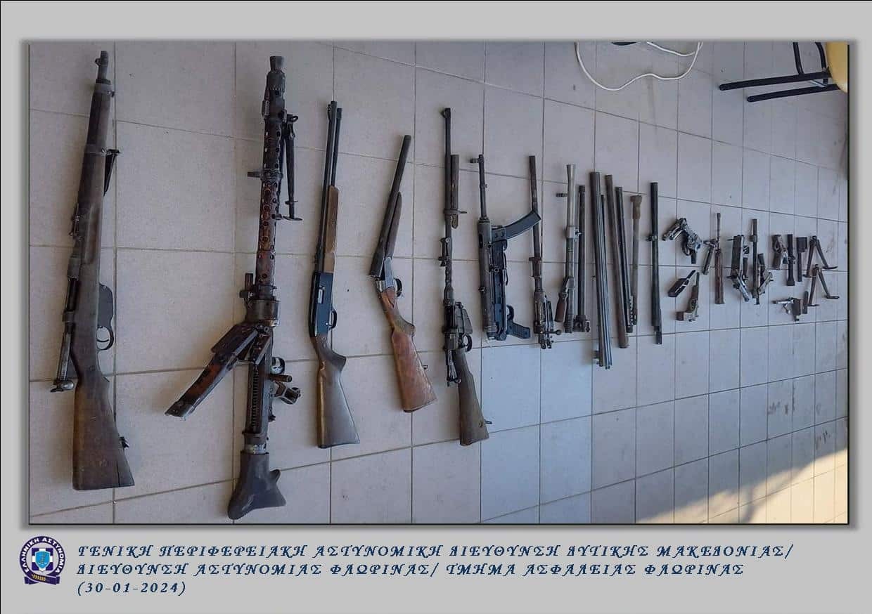 Ολόκληρο οπλοστάσιο βρέθηκε μέσα στο σπίτι στη Φλώρινα, με έναν 54χρονο και μια 57χρονη να συλλαμβάνονται και να οδηγούνται στη Δικαιοσύνη. Πρόκειται για Έλληνες και ερευνάται τόσο η ενδεχόμενη εμπλοκή τους σε αξιόποινες πράξεις όσο και ο ακριβής τρόπος και χρόνος προμήθειας του οπλισμού.