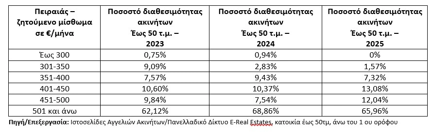 Στις περιοχές του Πειραιά, 7 στα 10 διαθέσιμα ακίνητα έχουν ζητούμενο μίσθωμα άνω των 500€ και 600€.