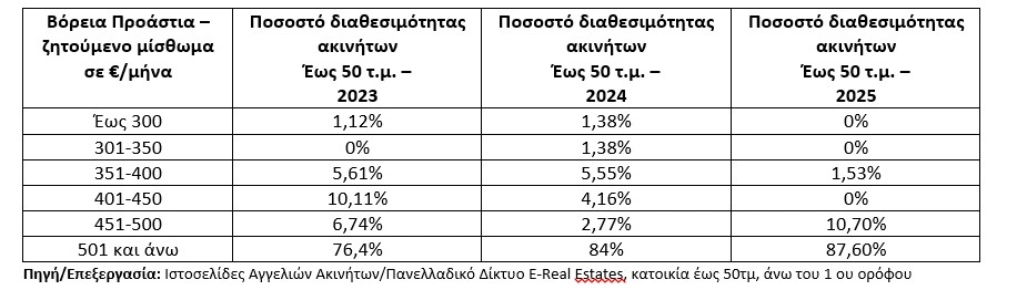 Στις περιοχές των Βορείων Προαστίων, 9 στα 10 διαθέσιμα προς μίσθωση ακίνητα έχουν ζητούμενο μίσθωμα άνω των 500€/μήνα