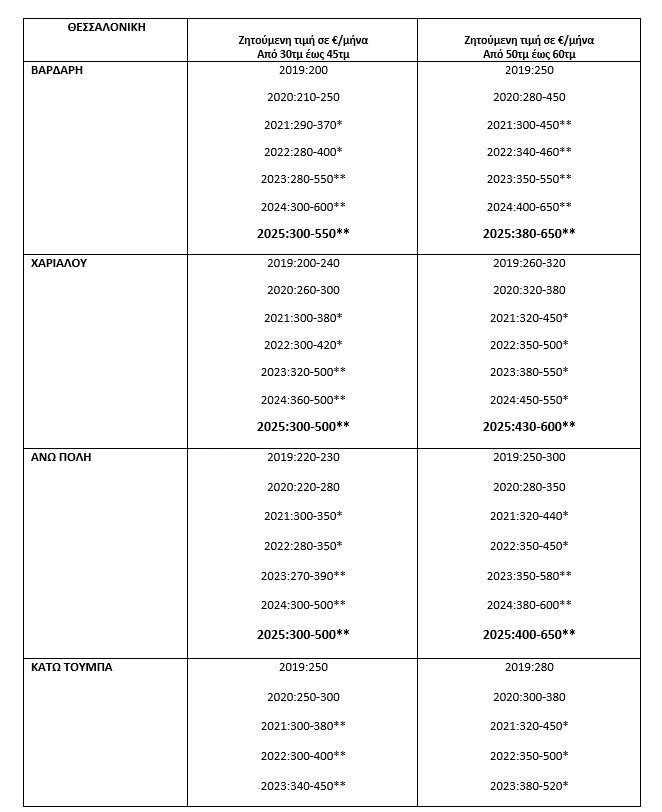 Χαρτογράφηση των ζητούμενων μισθωμάτων σε 7 περιοχές της Θεσσαλονίκης