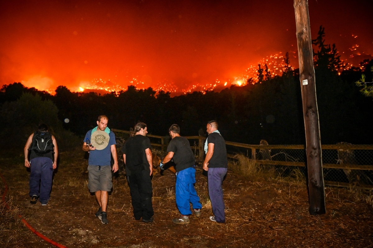 Κορυφώνεται η αγωνία στην Κάρυστο καθώς έπεσε η νύχτα, σταμάτησαν τα εναέρια πυροσβεστικά μέσα και η πύρινη κόλαση βρίσκεται σε πλήρη εξέλιξη.