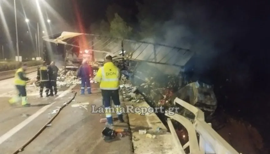 Για μισή ώρα περίπου διακόπηκε η κυκλοφορία και στο ρεύμα από Λαμία προς Αθήνα, αφού τα πυροσβεστικά οχήματα χρειάστηκε να στήσουν εγκαταστάσεις και να ρίχνουν νερό στο φορτηγό που φλεγόταν, όπως φαίνεται και στις φωτογραφίες του lamiareport.