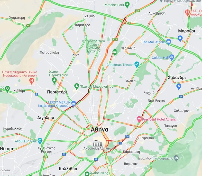 Δείτε τον χάρτη με την κίνηση τώρα στους δρόμους