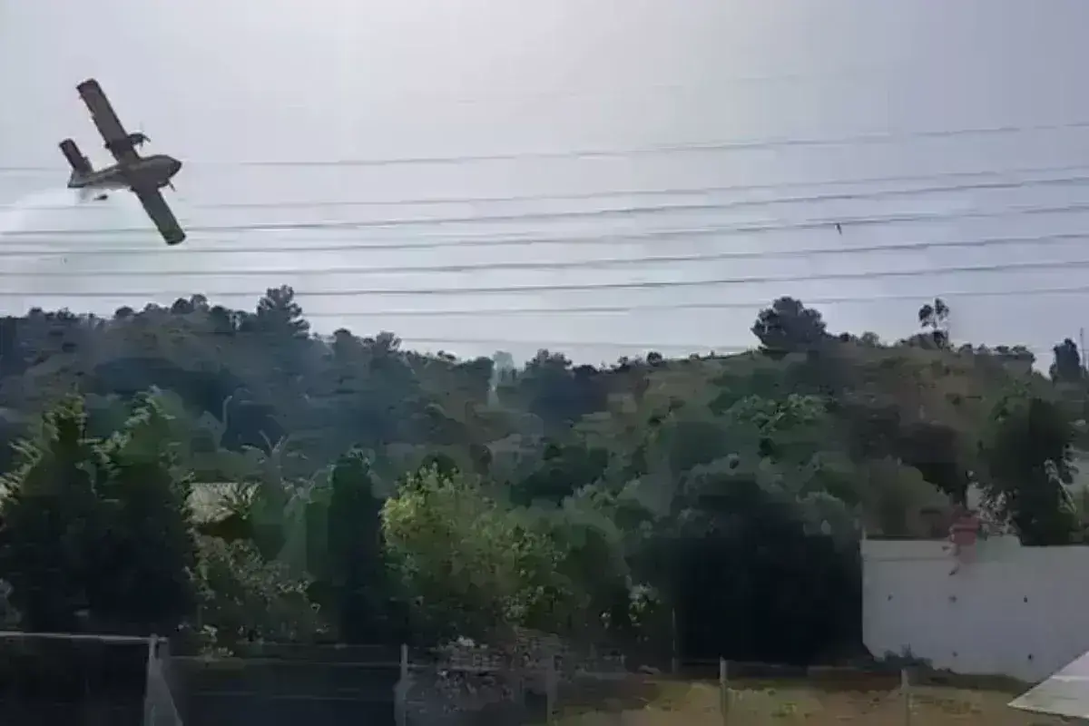 Συγκεκριμένα, όπως κατέγραψε το συμβάν σε βίντεο στο κινητό του πολίτης που βρίσκεται στην περιοχή, αεροσκάφος που επιχειρεί στην πυρκαγιά, βρίσκει στην κάτω πλευρά του πάνω σε ένα πεύκο, με αποτέλεσμα να σπάσουν τα κλαδιά του δέντρου.