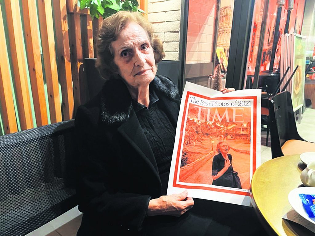 Εκείνη ήταν η στιγμή, στην είσοδο του σπιτιού της, που ο φωτογράφος έβγαλε την εικόνα-σύμβολο του εφιάλτη για το Sooc. «Ολοι οι πυροσβέστες ήταν στο μέτωπο της φωτιάς. Κοντά μου, έτρεξαν τα παιδιά του χωριού. Λιποθύμησα. Με συνέφεραν και στη συνέχεια με μετέφεραν στο Κέντρο Υγείας» θυμάται με πόνο η κυρία Γιούλα.
