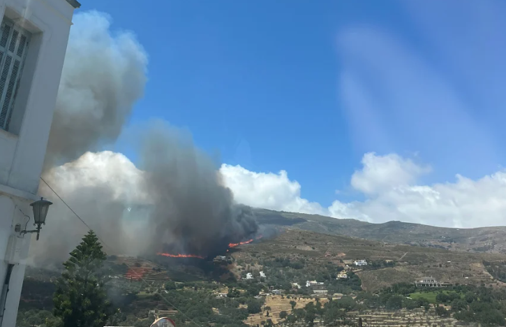#Πυρκαγιά σε δασική έκταση, στην περιοχή Στραπουριές, της νήσου Άνδρου. Κινητοποιήθηκαν επίγειες και εναέριες δυνάμεις.