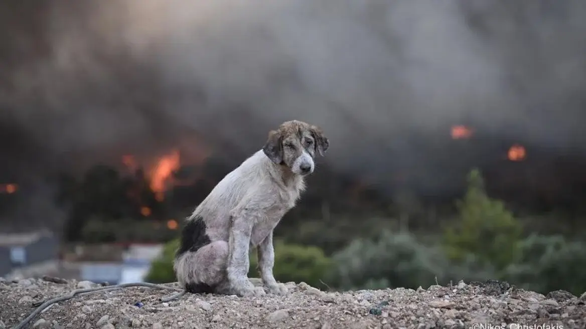 Όπως είπε στην εκπομπή «Καλοκαίρι YES» στο OPEN, στη διάρκεια της χθεσινής παρουσίας του στο σημείο προκειμένου να καλύψει τη φωτιά συνάντησε δύο σκυλιά. Τα ζώα βρίσκονταν κοντά σε μια φάρμα που είχε αρχίσει να καίγεται, ενώ αυτό που φωτογράφισε ήταν εκείνο που κοντοστάθηκε μπροστά σε ένα λόφο απίστευτα τρομαγμένο και απελπισμένο.