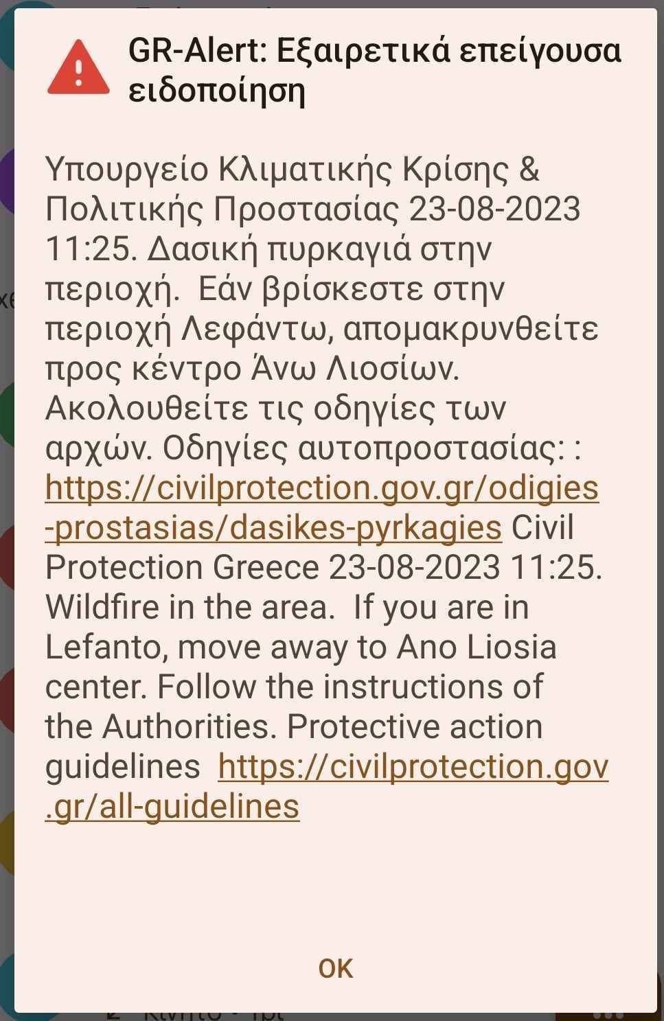 Οι κάτοικοι καλούνται να κατευθυνθούν προς το κέντρο των Άνω Λιοσίων.