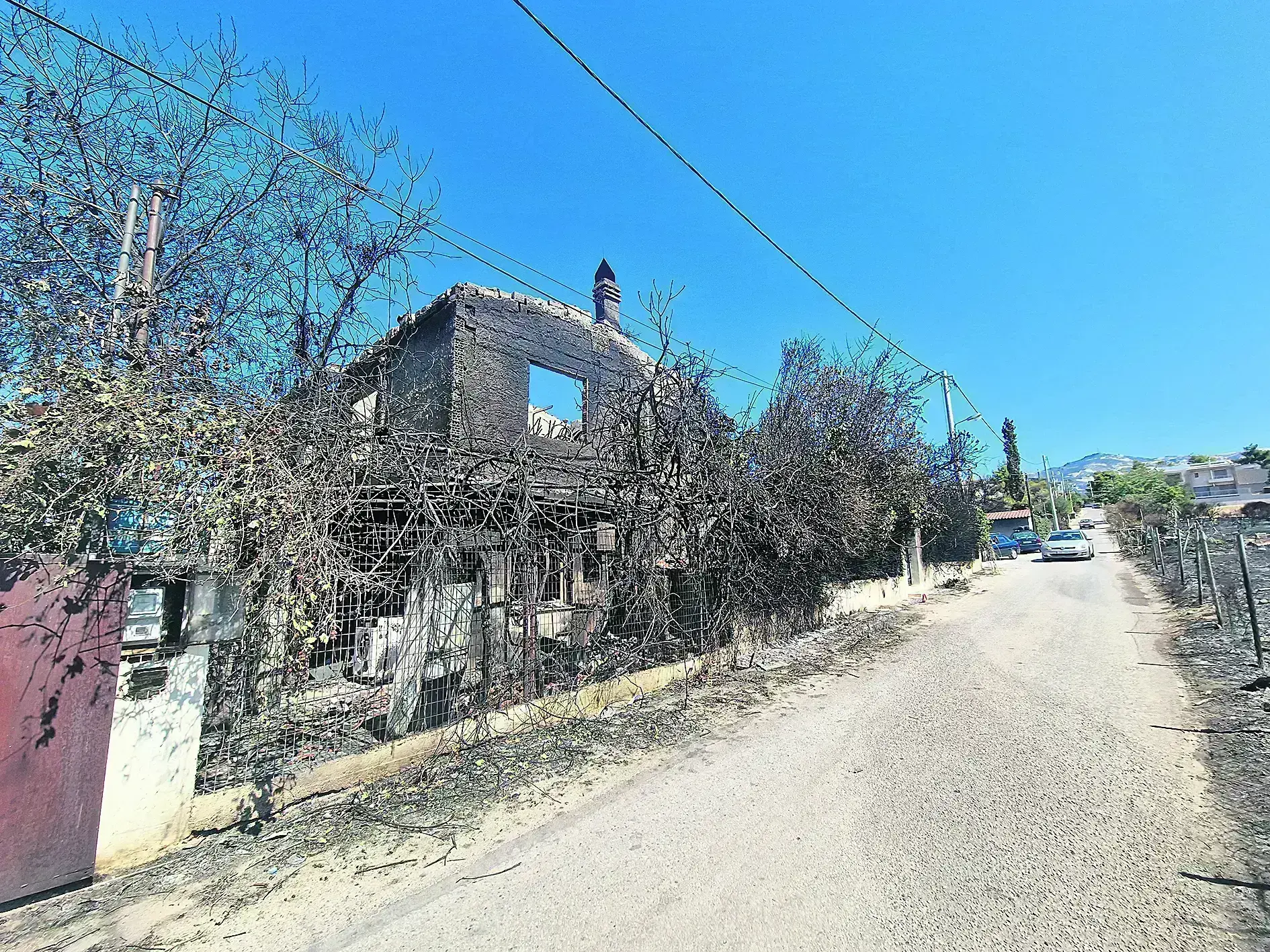 «Οι ιδιοκτήτες είχαν φύγει για διακοπές και γύρισαν χθες. Τώρα δεν ξέρω πού μένουν. Οσο κάνετε τον γύρο του χωριού θα βλέπετε την καταστροφή», μας λέει ο κάτοικος. Πράγματι, περιμετρικά σπίτια και αυτοκίνητα έχουν γίνει παρανάλωμα του πυρός και είναι προφανές ότι δόθηκε μεγάλη μάχη για να μην περάσει η φωτιά πιο βαθιά στην κατοικημένη περιοχή. Από όποιο σημείο του χωριού κι αν κοιτάξει κανείς, πάντως, το τοπίο είναι αποκαρδιωτικό. Η φωτιά που ξεκίνησε από αυτήν την περιοχή απλώθηκε σε μια έκταση περίπου 23 χιλιομέτρων μέχρι το Χαλάνδρι και ήταν η δεύτερη μεγαλύτερη σε έκταση φωτιά των τελευταίων δεκαετιών στην Αττική ύστερα από εκείνη του 2009.