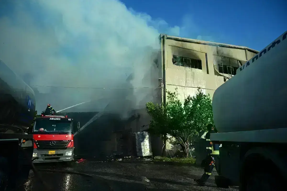 Σύμφωνα με την Πυροσβεστική, η επιχείρηση με τα χαρτικά καίγεται ολοσχερώς ενώ η φωτιά στην επιχείρηση με τα πλαστικά έχει σχεδόν σβήσει.