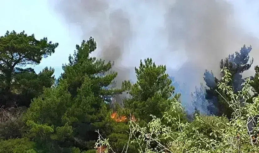 Η φωτιά καίει ξερά χόρτα σε οικοπεδική έκταση και οι φλόγες είναι ορατές από την Αττική Οδό.