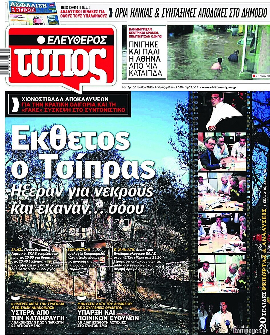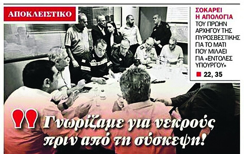 Ηξεραν για τους νεκρούς πριν από τη σύσκεψη για την ενημέρωση του πρωθυπουργού. Στα συνεχόμενα ρεπορτάζ του «Ε.Τ.» και του Eleftherostypos.gr αποτυπώθηκαν τα ντοκουμέντα και τα αποκλειστικά αδιάψευστα στοιχεία των διαβιβάσεων. Παναγιώτης Κουρουμπλής, Νίκος Τόσκας, Παύλος Πολάκης, Δημήτρης Τζανακόπουλος επέμεναν και επιμένουν ότι ο πρωθυπουργός δεν γνώριζε. Ηταν οι ίδιοι που έλεγαν ότι ο κόσμος απομακρύνεται και στέλνουν πρόσθετες δυνάμεις κατασβέσεως, ενώ ήδη τους είχαν διαβιβάσει πληροφορίες για δεκάδες νεκρούς και η φωτιά είχε σβηστεί. Το ψέμα και η υποκρισία συνεχίζονται μέχρι και σήμερα…