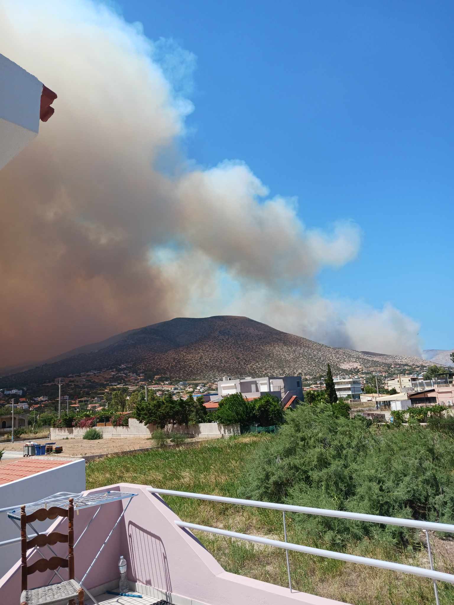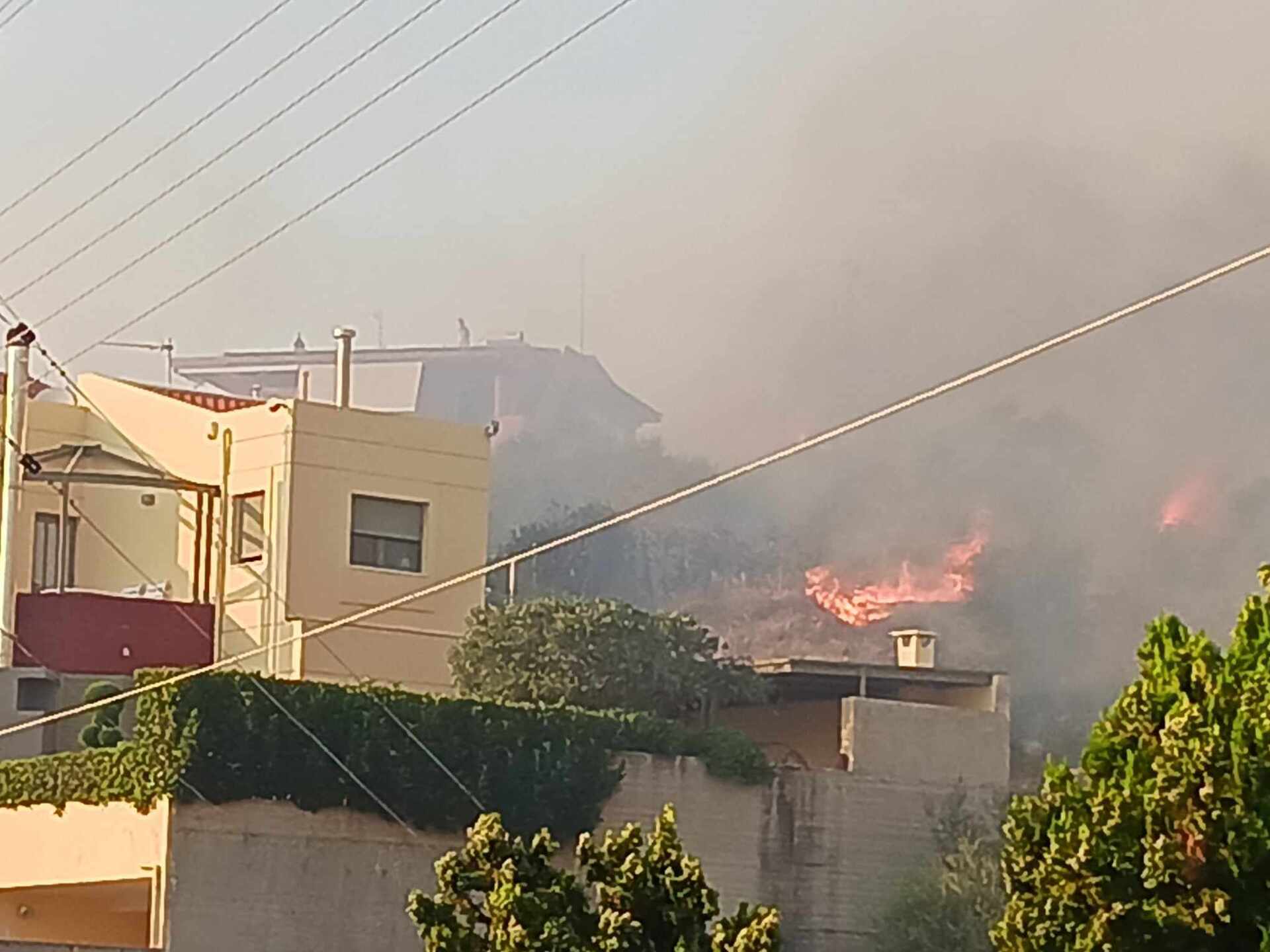 Πολλά σπίτια παραδόθηκαν στις φλόγες, ενώ στους δρόμους υπάρχουν και καμμένα αυτοκίνητα. Από το μεσημέρι επιχειρούν 4 ελικόπτερα και επτά αεροσκάφη, καθώς και ισχυρές επίγειες δυνάμεις, δίνοντας μάχη όχι μόνο με τις φλόγες και τις αναζωπυρώσεις, αλλά και με τον χρόνο, αφού με το πρώτο σούρουπο θα αναγκαστούν να προσγειωθούν τα εναέρια μέσα και θα απομείνουν μόνο οι επίγειες δυνάμεις.