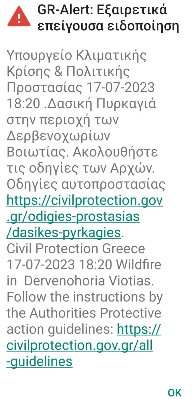 Το μήνυμα του 112 για τη φωτιά στη Δερβενοχώρα: