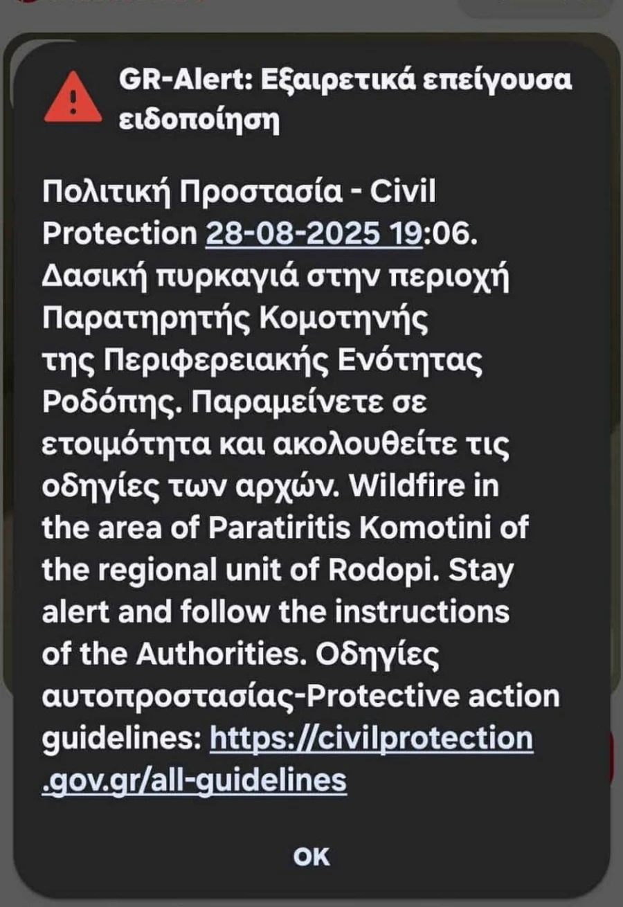 Στη συνέχεια, εστάλη προειδοποιητικό μήνυμα από το 112 στους κατοίκους της περιοχής.