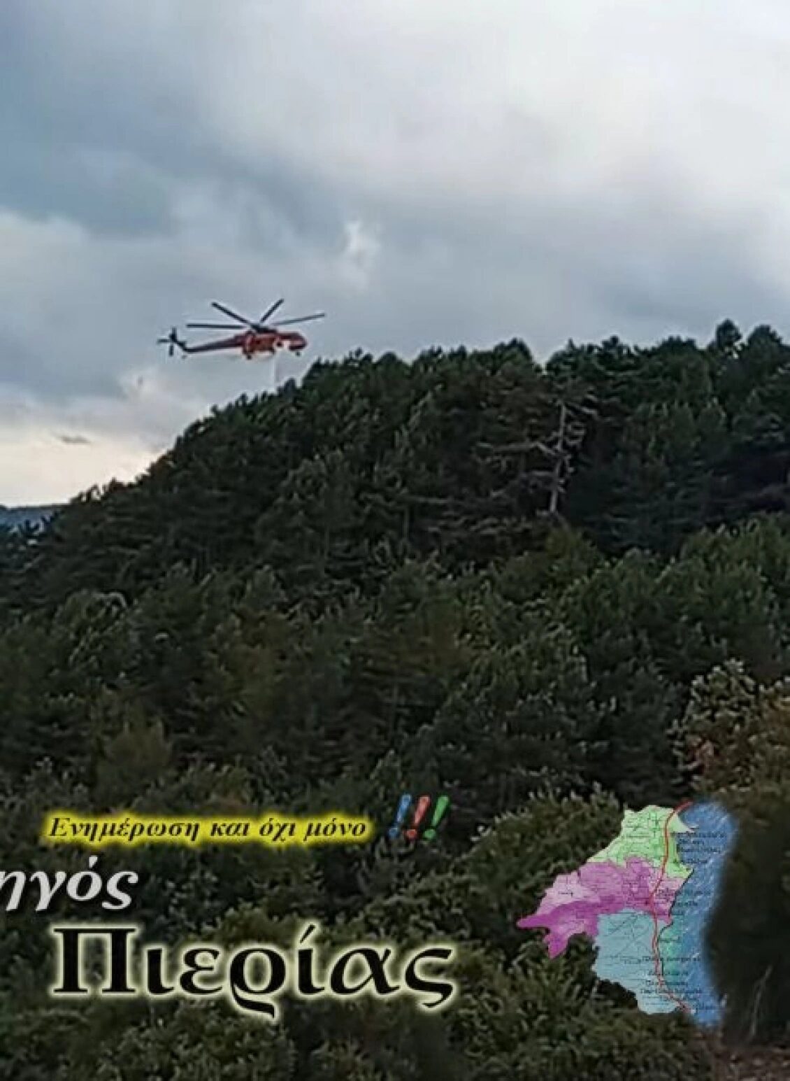 Σύμφωνα με το odigos-pierias.gr, η φωτιά προκλήθηκε από κεραυνό, κατά τη διάρκεια τοπικής καταιγίδας που έπληξε την περιοχή. Συγκεκριμένα, 29 πυροσβέστες με 5 οχήματα και ένα ελικόπτερο Bell που πραγματοποιεί συνεχείς ρίψεις νερού, σύμφωνα με την Υπηρεσία.
