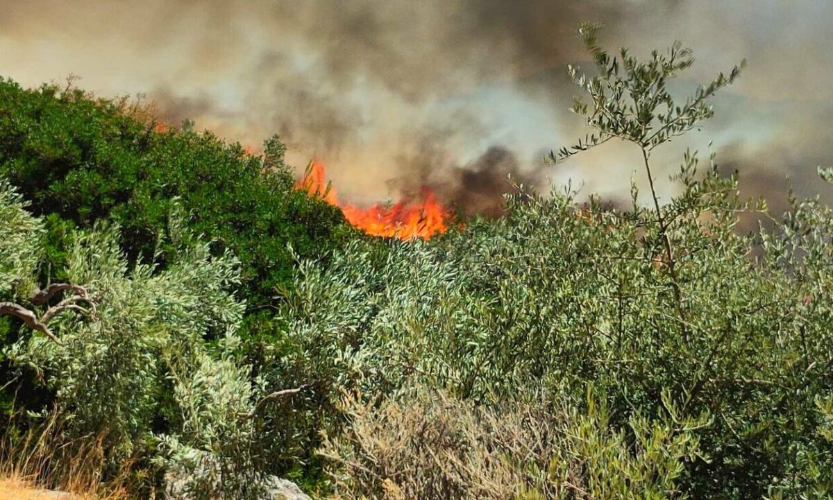 Η μεγάλη φωτιά εκδηλώθηκε σε αγροτοδασική έκταση κοντά στον Πρόδρομο όπου πνέουν πολύ ισχυροί άνεμοι.