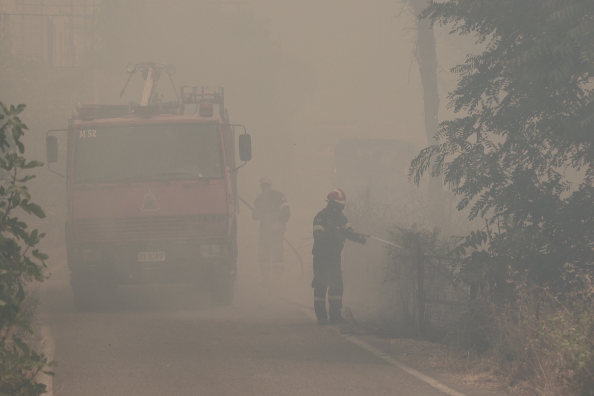 Στα μέτωπα της φωτιάς επιχειρούν πυροσβέστες, εθελοντές, κάτοικοι και επικρατεί εκνευρισμός, καθώς πολλοί είναι εκείνοι που θέλουν να πάνε προς τα σπίτια τους και η αστυνομία δεν τους το επιτρέπει.