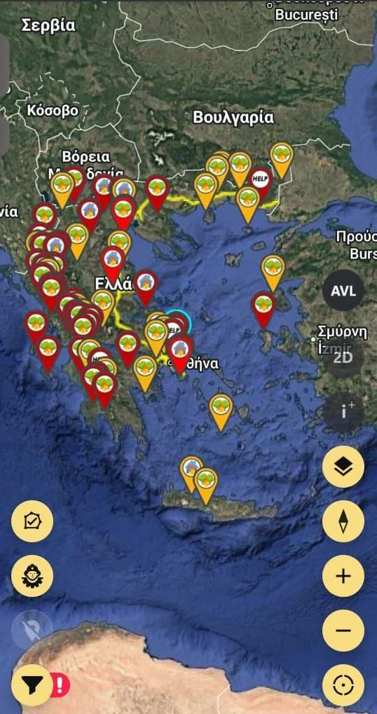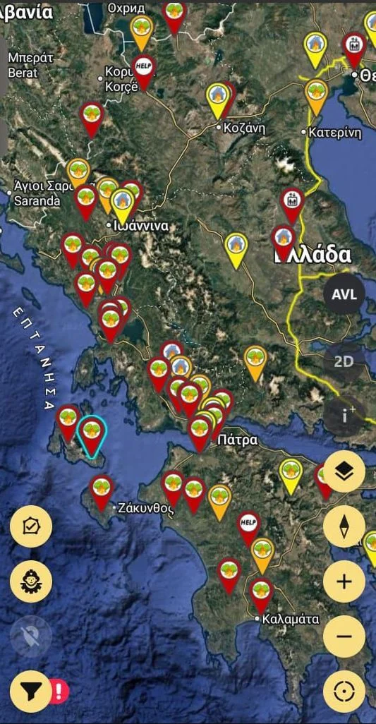 Στον δεύτερο χάρτη μπορείτε να δείτε live πού έχει φωτιά τώρα πατώντας εδώ