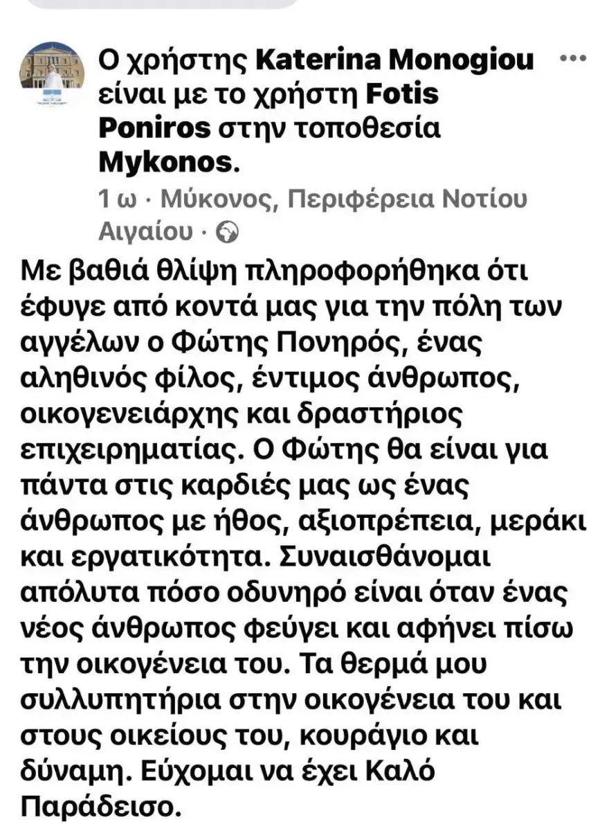 «Ήταν ένας αληθινός φίλος» – Η συλλυπητήρια ανάρτηση της Κατερίνας Μονογυιού