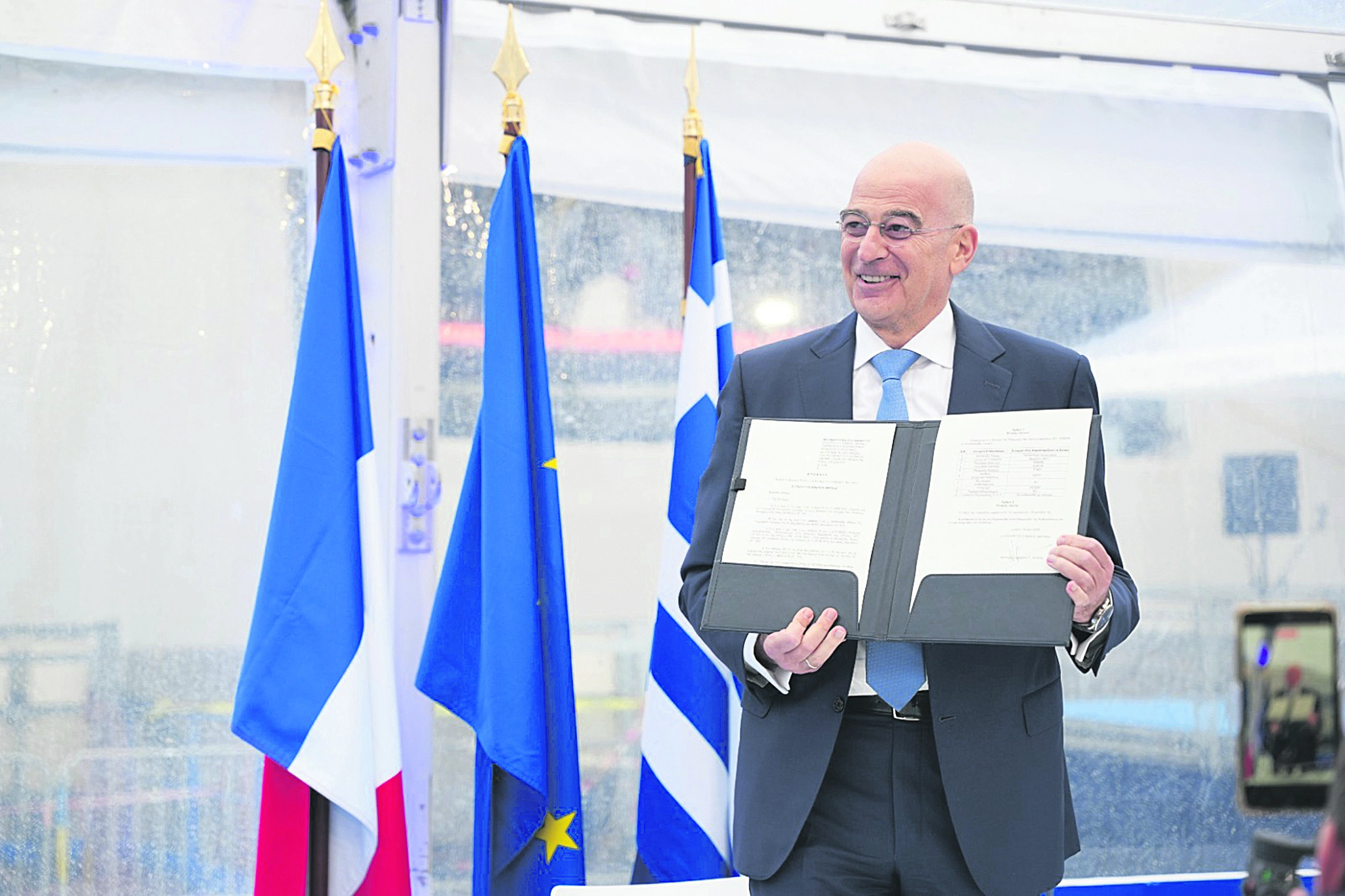Αναφερόμενος στη στρατηγική μας σχέση με τη Γαλλία, «τη χώρα, στην οποία κατασκευάστηκε αυτό το εξαιρετικό πλοίο», ο υπουργός είπε ότι «η Συμφωνία Στρατηγικής Εταιρικής Σχέσης της 28ης Σεπτεμβρίου 2021, την οποία υπέγραψα τότε ως υπουργός Εξωτερικών της Ελληνικής Δημοκρατίας, αποτέλεσε μια στρατηγική επιλογή για τη πατρίδα μας. Ενσωματώνει και την αλληλεγγύη μεταξύ δύο κρατών».