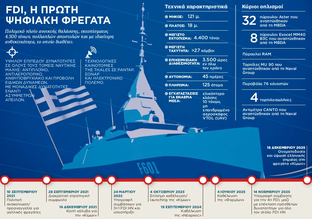 Το πλοίο-«φρούριο», χάρη στις υψηλού επιπέδου δυνατότητές του, είναι ικανό να χειριστεί τρέχουσες και αναδυόμενες απειλές και εντός του 2026 θα είναι επιχειρησιακά έτοιμο στο Αιγαίο και την Ανατολική Μεσόγειο.