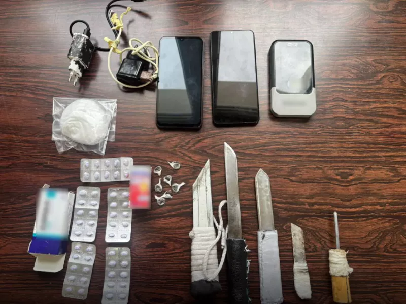 Στον έλεγχο που πραγματοποίησαν οι αστυνομικοί εντόπισαν αυτοσχέδια μαχαίρια, ναρκωτικά και κινητά τηλέφωνα, τα οποία οι κρατούμενοι είχαν παράνομα για να επικοινωνούν με τον έξω κόσμο.