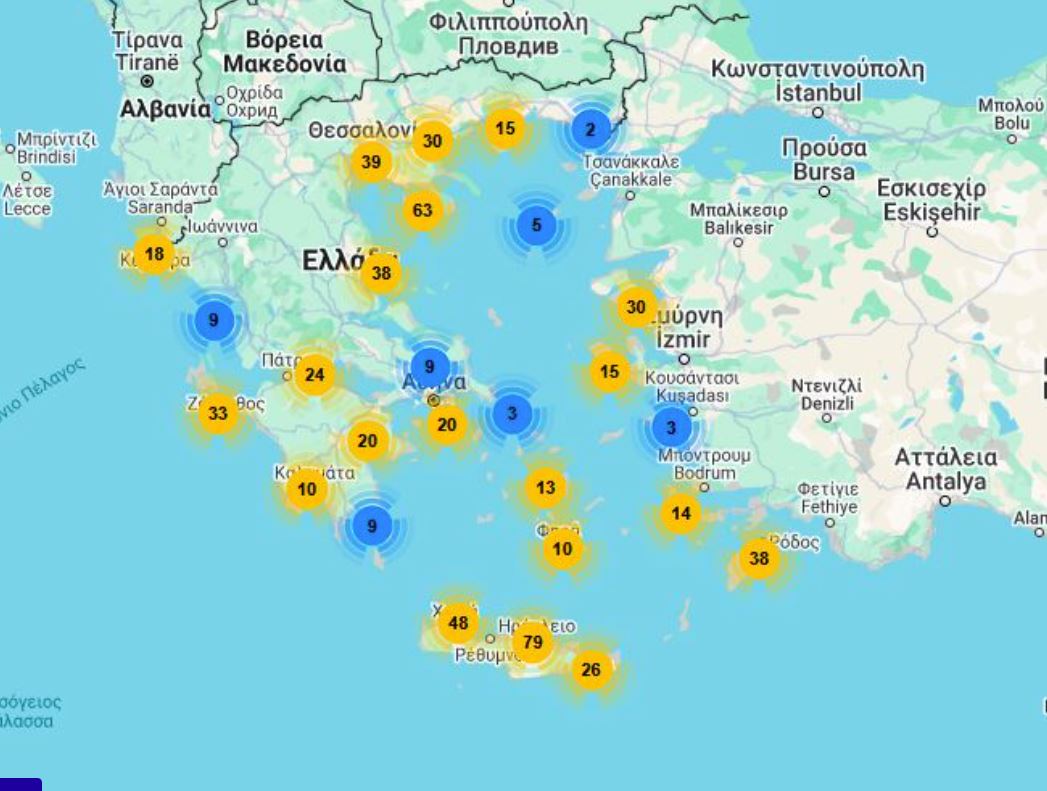 Αναλυτικά ο χάρτης με τις «Γαλάζιες Σημαίες»: