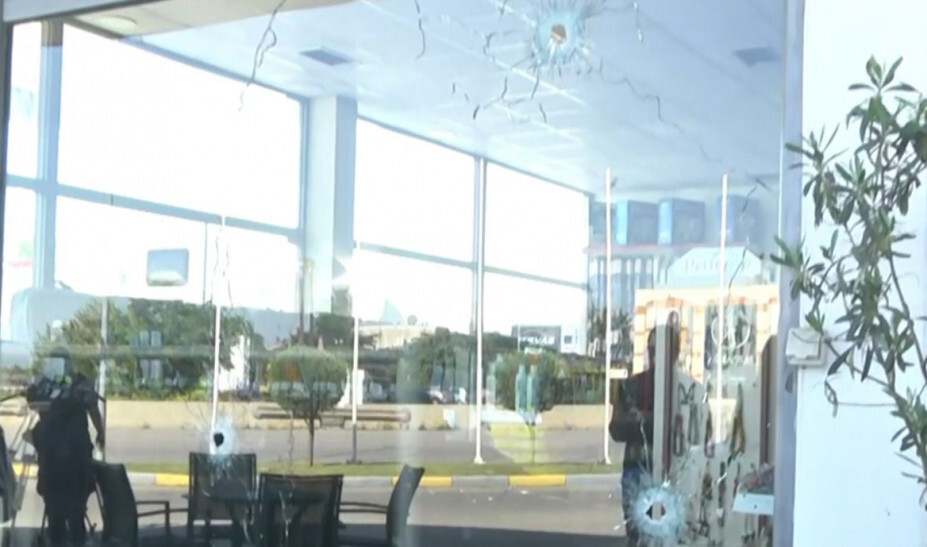 Στα τζάμια είναι ορατά τα σημάδια από τις σφαίρες. «Γάζωσαν το κατάστημα», ήταν τα πρώτα λόγια του κ. Κιουρτζή.