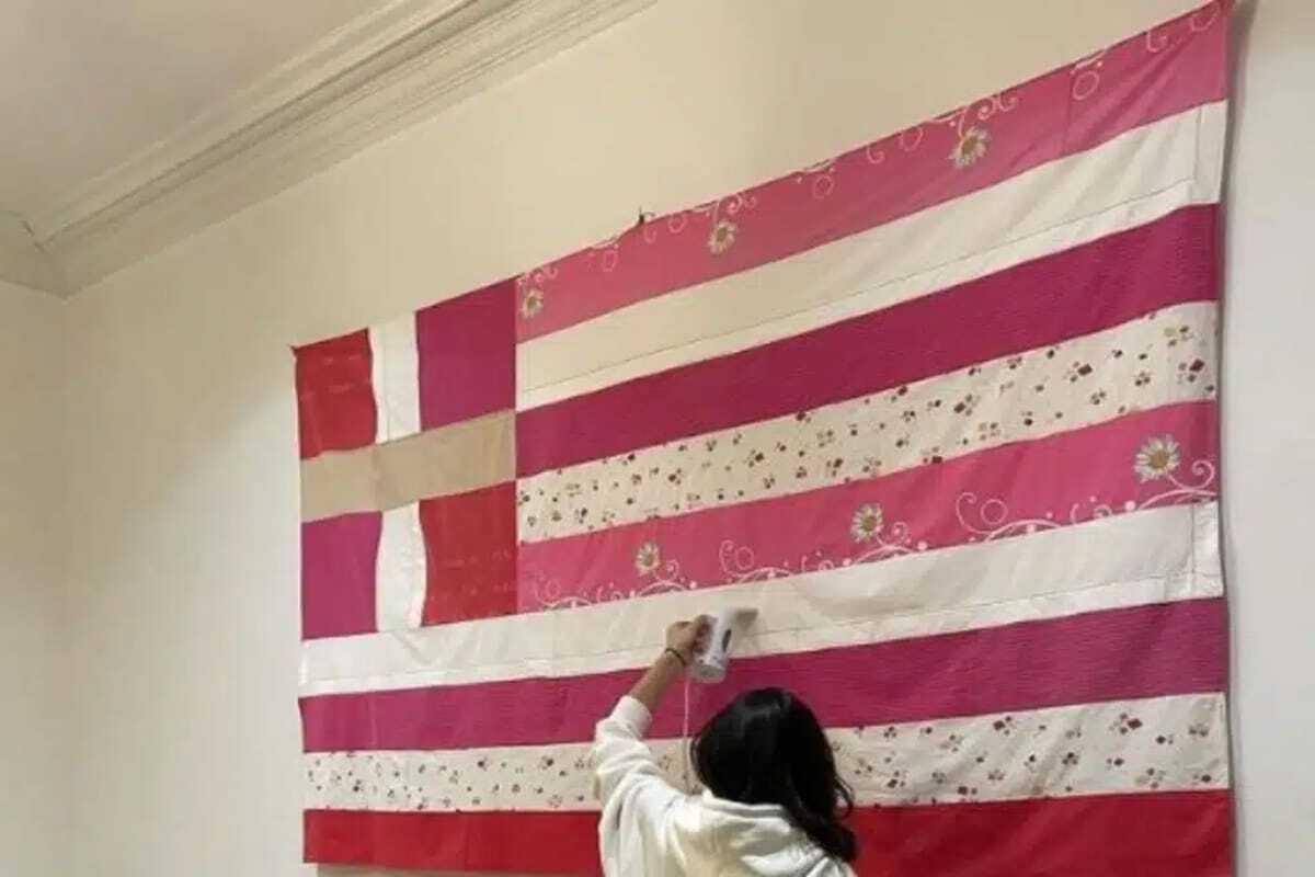 Με αυτά τα λόγια η Γεωργία Λαλέ αναφέρθηκε στο πολυσυζητημένο και αμφιλεγόμενο έργο της, τη ροζ σημαία, που εκτέθηκε στο Γενικό Προξενείο της χώρας μας στη Νέα Υόρκη, ωστόσο έπειτα από αντιδράσεις ορισμένων, το ελληνικό υπουργείο Εξωτερικών ζήτησε την απόσυρσή του.