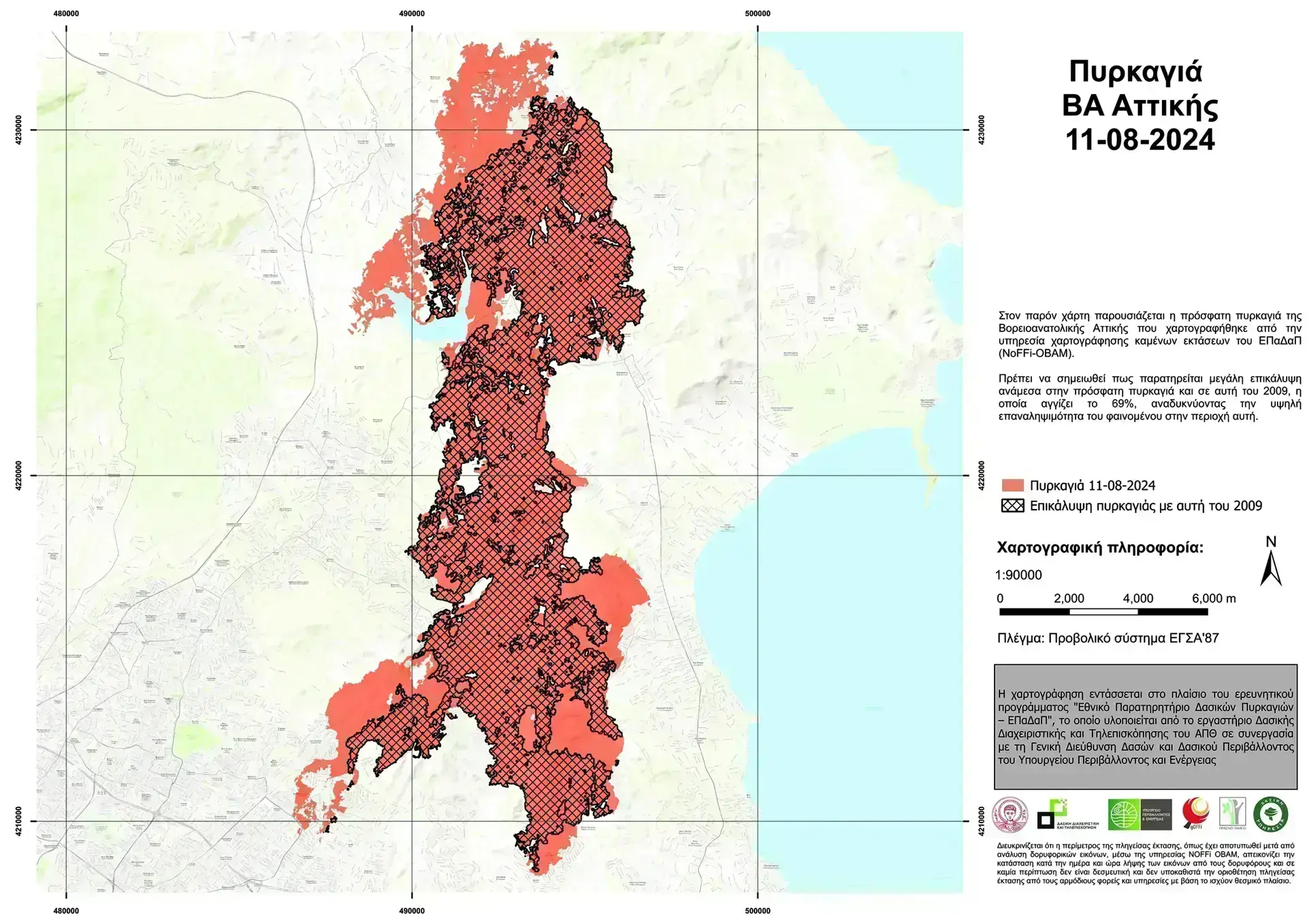 Τα στελέχη του Εργαστηρίου ετοίμασαν για τον «Ε.Τ.» της Κυριακής συγκριτικούς δορυφορικούς χάρτες, επικεντρωμένους στις μεγάλες πυρκαγιές που έπληξαν την Αττική τα τελευταία χρόνια. Ξεχωρίζει εκείνος που παρουσιάζει την έκταση της Πεντέλης που κάηκε τόσο στην πρόσφατη πυρκαγιά όσο και το 2009. Το ποσοστό της αλληλοεπικάλυψης αγγίζει το 69%, «αναδεικνύοντας την υψηλή επαναληψιμότητα του φαινομένου στη συγκεκριμένη περιοχή»!