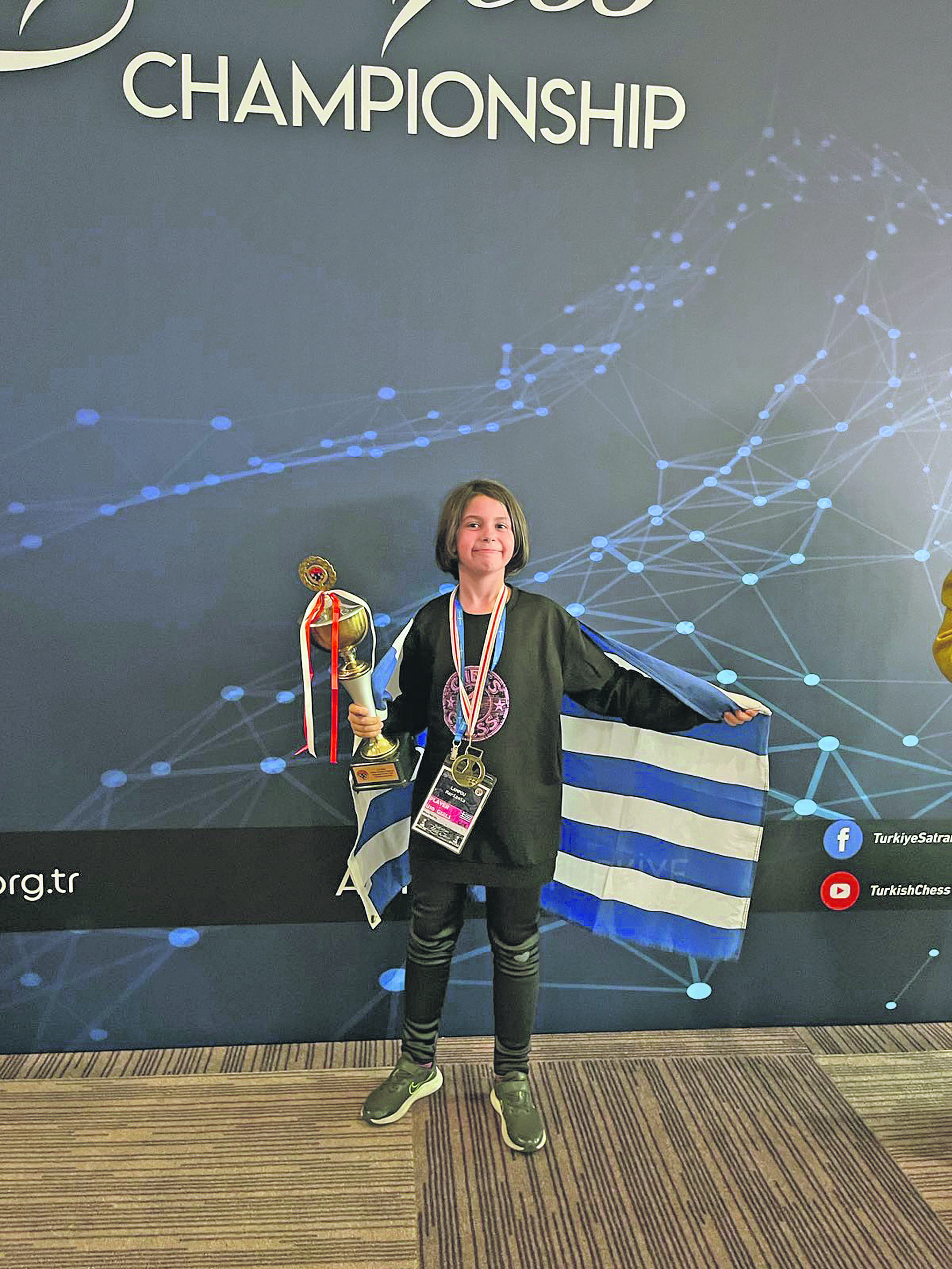 Η μικρή μαθήτρια Δημοτικού μόνο θετικά πράγματα έχει να θυμάται από το ταξίδι της στην Αττάλεια. Οπως μας μεταφέρει η μητέρα της, συμμετείχε για πολλές ημέρες σε παρτίδες που απαιτούσαν πολλές ώρες. Μπορεί να δυσκολεύτηκε, να πέρασε πολλές ώρες αντιμετωπίζοντας συνομήλικους αντιπάλους, όμως τα κατάφερε να πάρει το πρώτο βραβείο. Η εμπειρία του διαγωνισμού και το ταξίδι ήταν γι’ αυτήν σαν διακοπές, καθώς βρέθηκε και έκανε παρέα με άλλα παιδιά της ελληνικής αποστολής. Και γι’ αυτό το λόγο πέρασε καταπληκτικά, όπως αναφέρει.