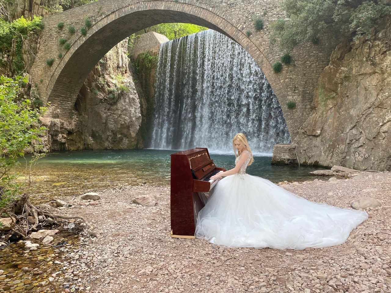 Πρόκειται για τη μουσικό που έχουμε δει να παίζει πιάνο στον αέρα πάνω από την Κοιλάδα των Τεμπών, μέσα στη λίμνη της Καστοριάς και σε άλλα μέρη της χώρας με απίστευτη φυσική ομορφιά.