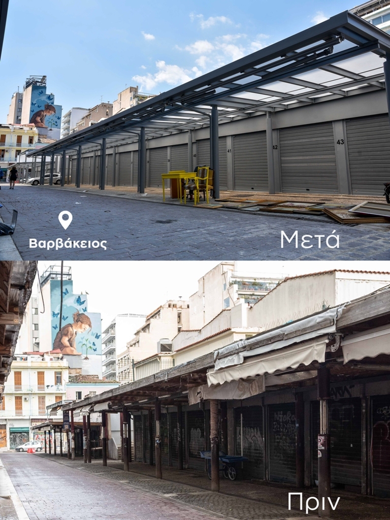 Η ιστορική αγορά της Αθήνας, που βρίσκεται στο κέντρο της εδώ και 136 χρόνια, αναβαθμίστηκε με βάση την αρχή της βιωσιμότητας και με κριτήριο την υψηλή προστασία από καιρικά φαινόμενα. Ανακατασκευάστηκαν ολικά σε 7 μήνες οι κτιριακές υποδομές των χώρων πώλησης της λαχαναγοράς της Βαρβακείου, καθώς και τα στέγαστρα, αποκαθιστώντας ταυτόχρονα όποιες βλάβες είχαν προκληθεί από την κακοκαιρία «Μπάλλος» που έπληξε την Αττική τον Οκτώβριο του 2021. Το έργο, προϋπολογισμού 1,5 εκατ. ευρώ, ολοκληρώθηκε χωρίς να διακοπεί η εμπορική δραστηριότητα ούτε για μία ημέρα, αφού οι πωλητές μετακινήθηκαν προσωρινά σε εγκαταστάσεις επί της οδού Αθηνάς.