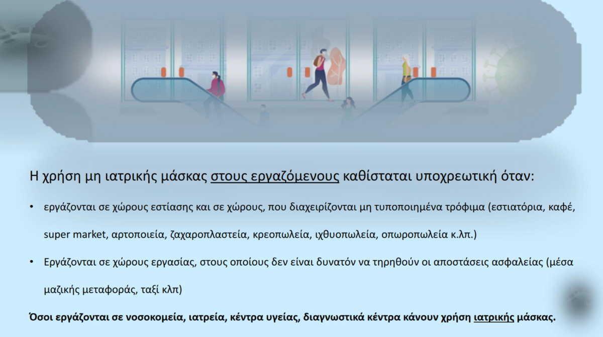 Αναλυτικά η χρήση προστατευτικής μάσκας θα είναι υποχρεωτική για όλους, πέρα από τα σούπερ μάρκετ και τα μέσα μαζικής μεταφοράς, σε: