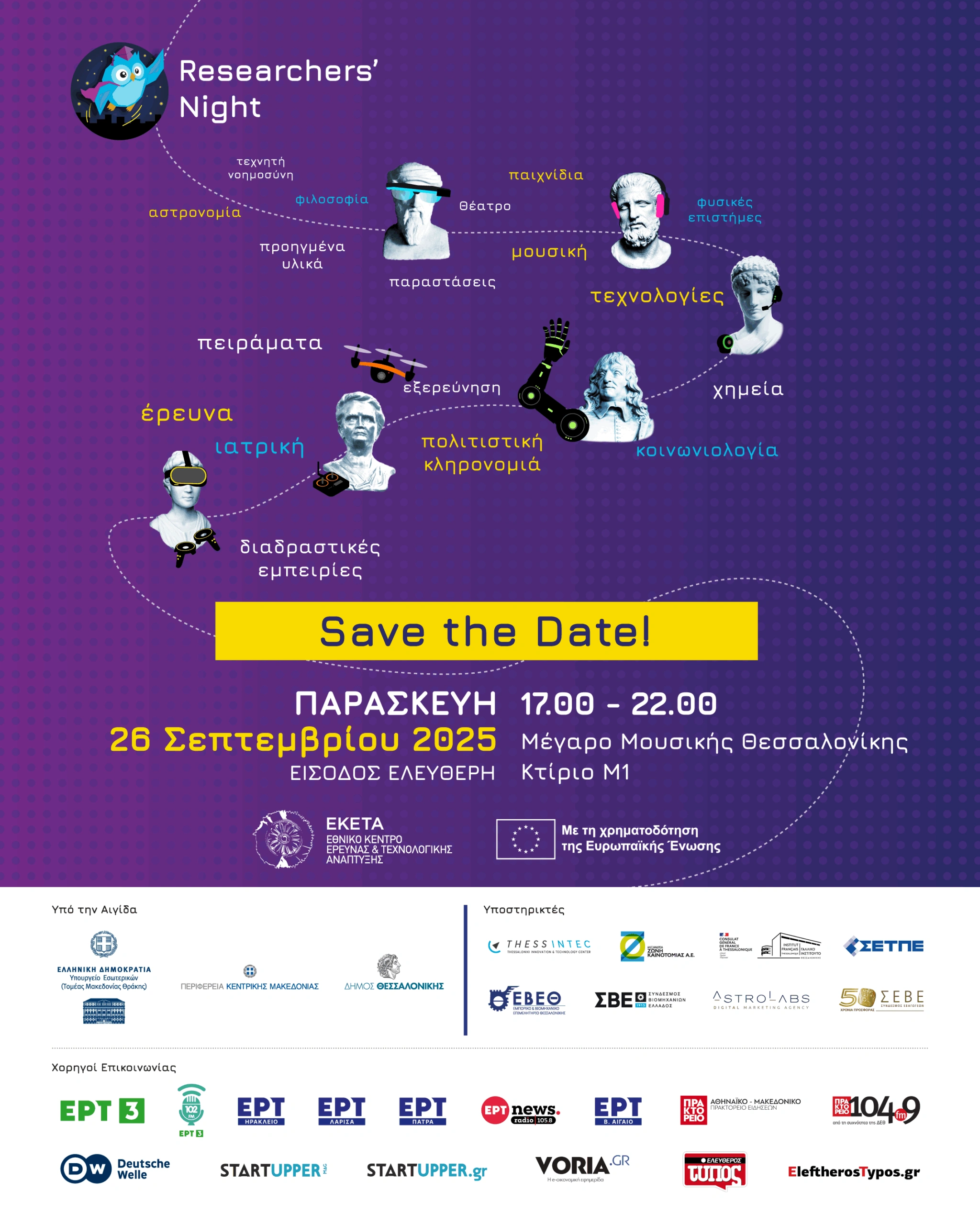 Φέτος, η διοργάνωση αποκτά ξεχωριστή σημασία, καθώς το Εθνικό Κέντρο Έρευνας και Τεχνολογικής Ανάπτυξης (ΕΚΕΤΑ), που έχει την ευθύνη της διοργάνωσης και του συντονισμού, γιορτάζει τα 25 χρόνια από την ίδρυσή του. Η «Βραδιά του Ερευνητή» θα αναδείξει το πλούσιο ερευνητικό έργο του Κέντρου μέσα από μια μεγάλη διαδραστική έκθεση τεχνολογιών, όπου οι επισκέπτες θα έχουν την ευκαιρία να αλληλεπιδράσουν με ερευνητές και να γνωρίσουν από κοντά τις τελευταίες επιστημονικές εξελίξεις.