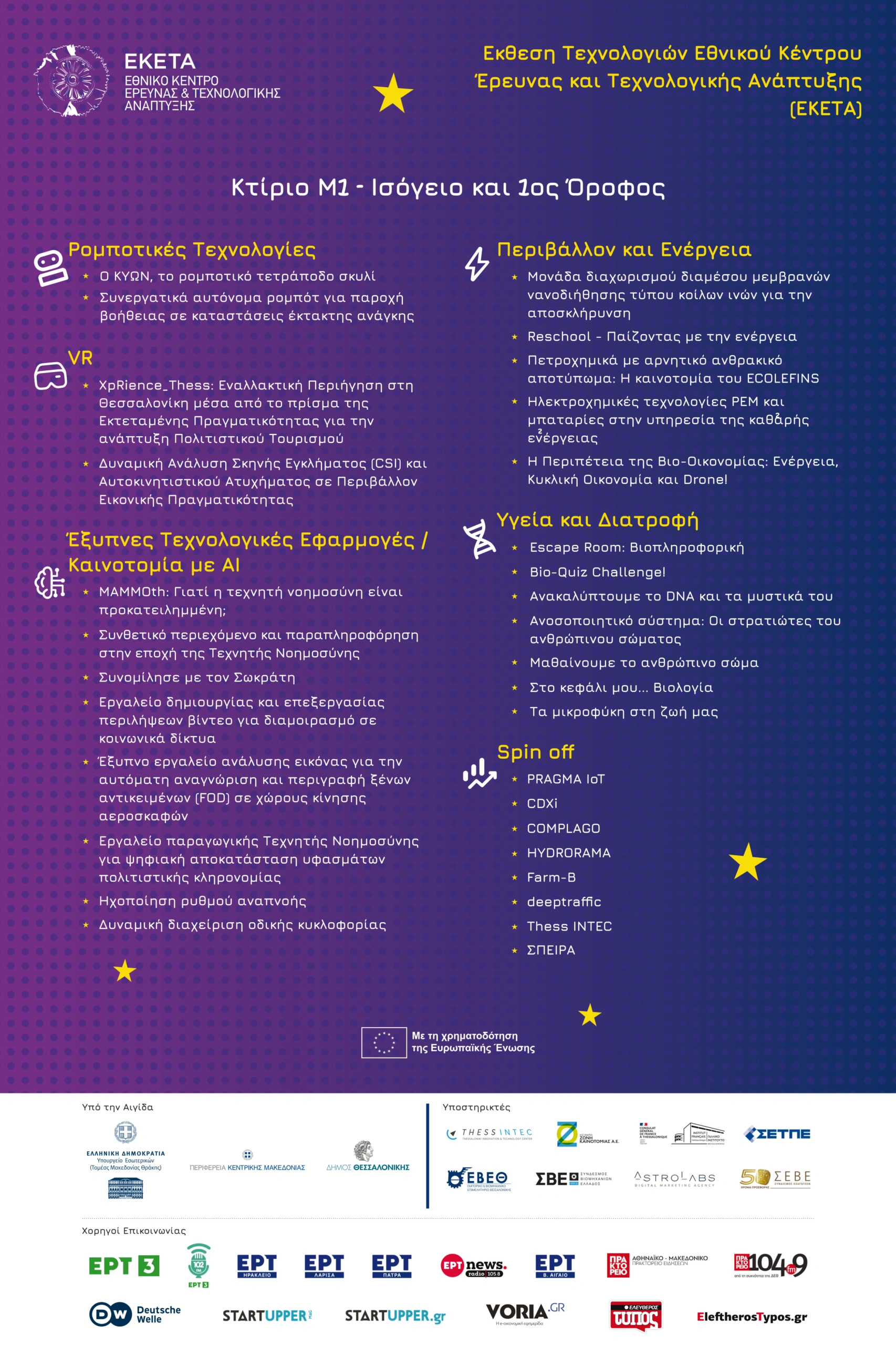 Κεντρικό ρόλο στη φετινή διοργάνωση κατέχει η «έρευνα για την αγορά», μέσα από την παρουσία έξι spin-offs του ΕΚΕΤΑ και του Γραφείου Μεταφοράς Τεχνολογίας, δείχνοντας πώς οι επιστημονικές ανακαλύψεις μπορούν να μετατραπούν σε προϊόντα και υπηρεσίες με απτό αντίκτυπο στην κοινωνία. Παράλληλα, μικροί και μεγάλοι θα απολαύσουν διαδραστικά πειράματα, παρατηρήσεις φυσικών φαινομένων, καλλιτεχνικές δράσεις, αλλά και εκπαιδευτικά εργαστήρια για παιδιά, που κάνουν τη μάθηση διασκεδαστική.