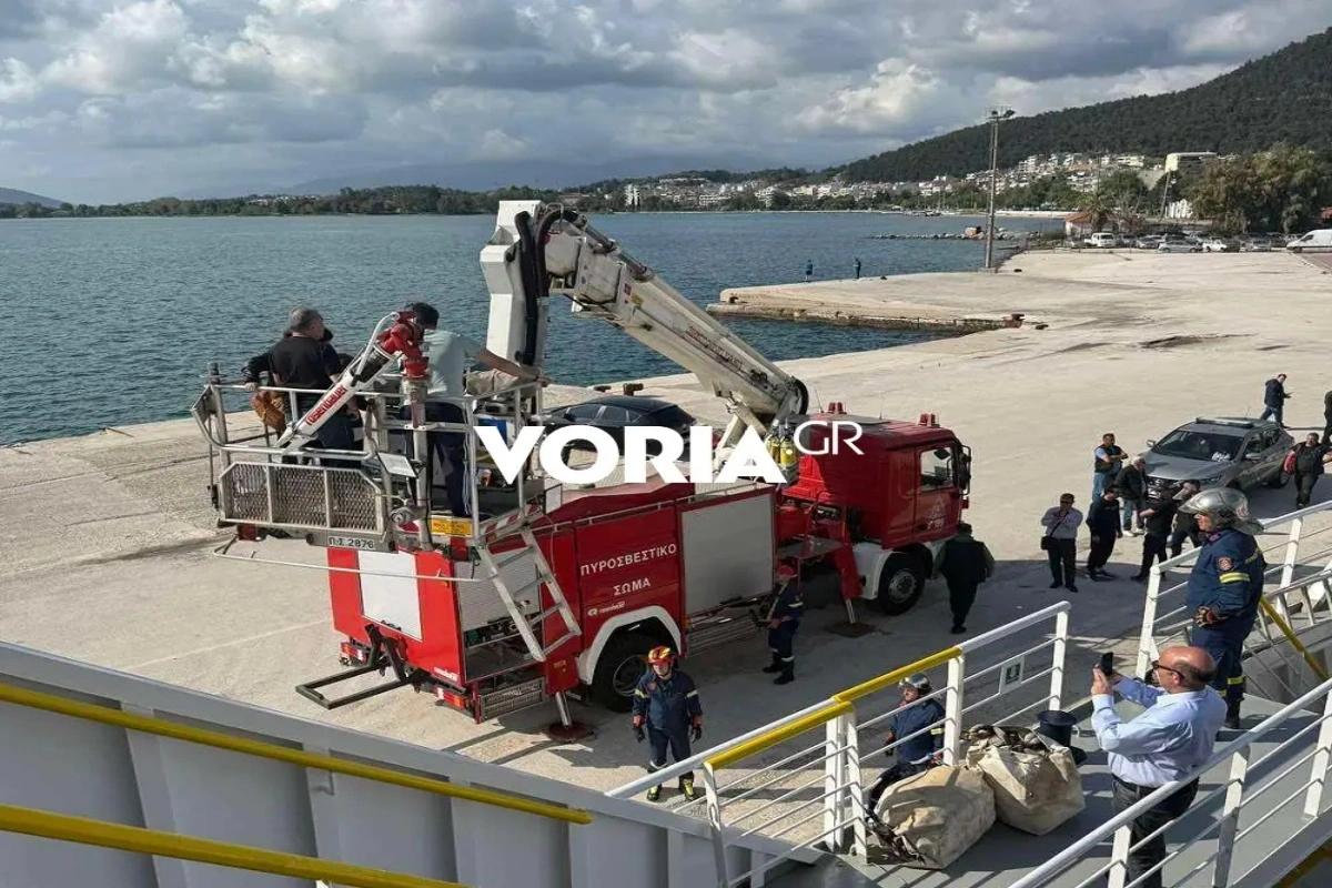 Ο καπετάνιος σταμάτησε το πλοίο αρκετά μέτρα από το λιμάνι και κατόπιν συνεννοήσεως με το λιμενικό κλήθηκε η Πυροσβεστική.