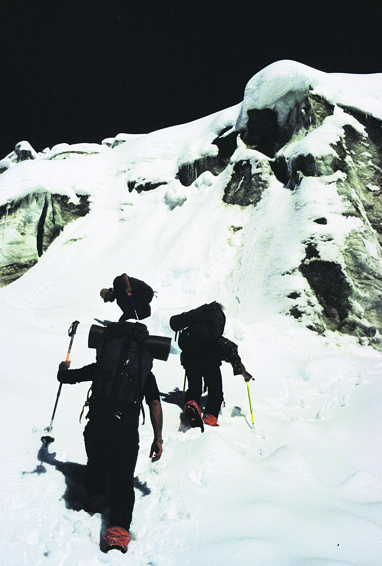 Το 1985, ο Χρήστος Λάμπρης ήταν 26 ετών. Είχε μεγαλώσει στα Τζουμέρκα, «ένα χωριό που το βουνό το έχεις στην αυλή σου», όπως λέει στον «Ε.Τ.» της Κυριακής. Η ορειβασία είχε μπει στη ζωή του λίγο αργότερα, μέσω του ΕΟΣ Αθηνών. Από εκεί ξεκίνησαν όλα. «Ημασταν δέκα άνθρωποι από διάφορους συλλόγους. Ενθουσιώδεις, αποφασισμένοι και ανυποψίαστοι. Σήμερα το λέω καθαρά, δεν ξέραμε τι θα πει Ιμαλάια. Δεν ξέραμε ούτε το βουνό ούτε τη συμπεριφορά του. Ελάχιστες πληροφορίες, και αυτές παλιές». Η αποστολή έφτασε στο Κατμαντού γύρω στις 10 Σεπτεμβρίου του 1985. Δέκα μέρες αργότερα, ξεκινούσε η πορεία για το Base Camp. Οταν έφτασαν, μπήκαν αμέσως στη διαδικασία εγκατάστασης των camps. «Μόνοι μας. Δεν είχαμε Σέρπα. Δεν υπήρχε υποστήριξη. Κουβαλούσαμε ό,τι βλέπεις σήμερα να κουβαλάνε δεκαπέντε Νεπαλέζοι. Τη διαδρομή την ανοίγαμε μόνοι μας. Ανέβα-κατέβα δέκα φορές για να μεταφέρεις υλικό».